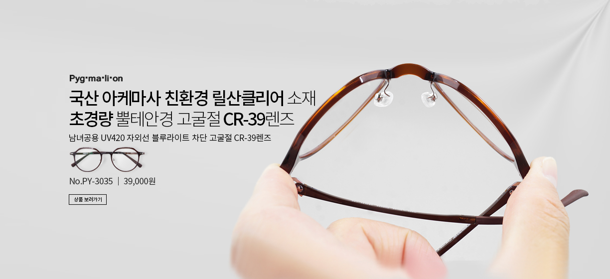상품명 : [Pygmalion NO.PY-3035]국내생산 원형 라운드 남녀공용 아케마사 릴산클리어 소재 초경량 뿔테안경UV420 자외선 블루라이트 차단 고굴절 CR-39렌즈